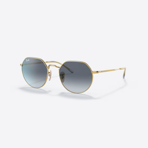 Ray-Ban Jack RB3565 001/86 55 sunglasses in Gold. The 001/86 Gold color frame is complimented with Blue/Gray finish lenses. This model features Metal Irregular Shape in size 55-20-145.